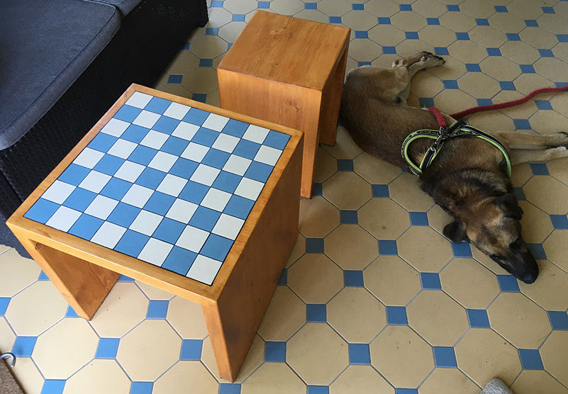 Tafeltje ingeleggen met overgebleven tegeltjes.