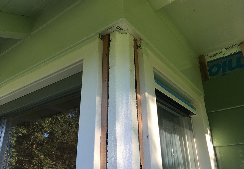 Hoeken van de erker isoleren.