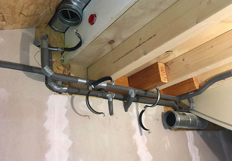 De buizen die in verbinding staan met buiten worden thermisch geïsoleerd.