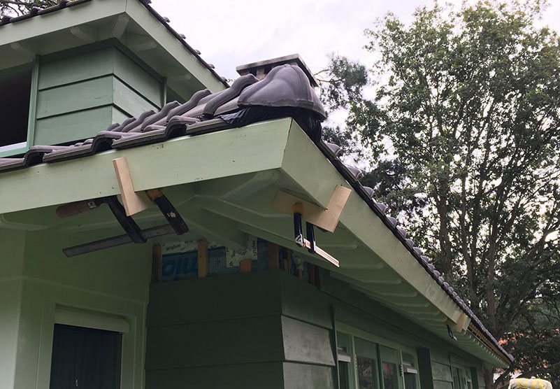 De dakrand plaatsen van het onderste dak