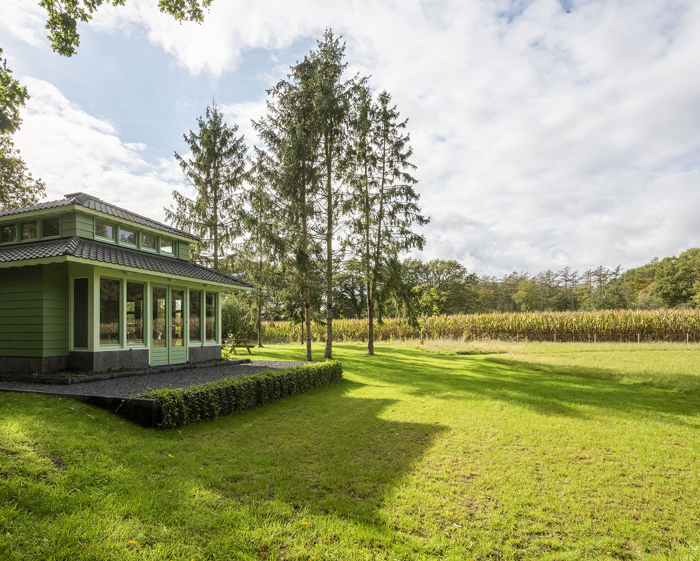 De noordzijde met het weiland.