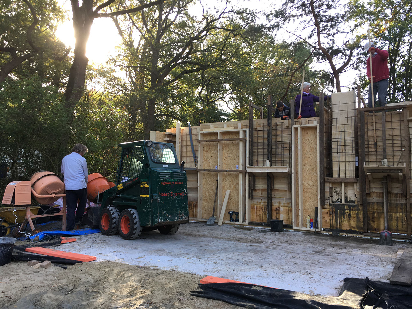 Plaatsen van mantelbuizen, riolering, vloerisolatie en bekisting voor de betonnen vloer