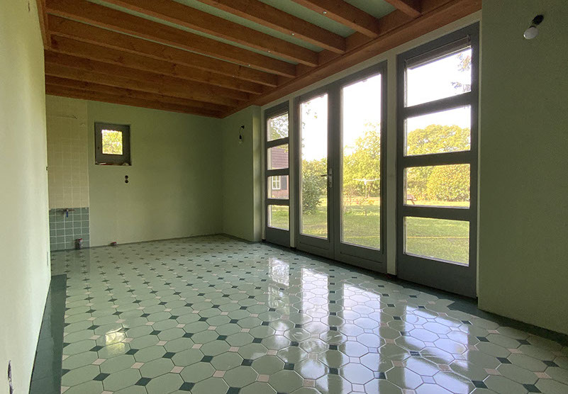 De tegels liggen er in. Nu nog voegen