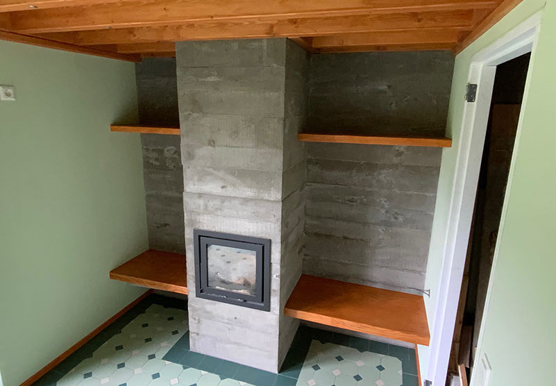 Schappen links en rechts van de schoorsteen zijn klaar