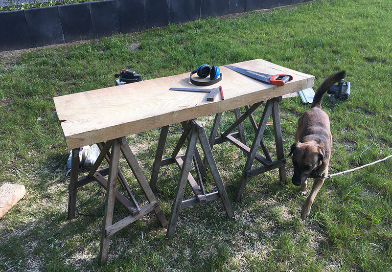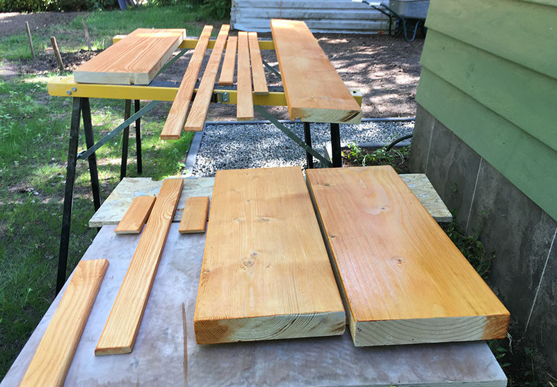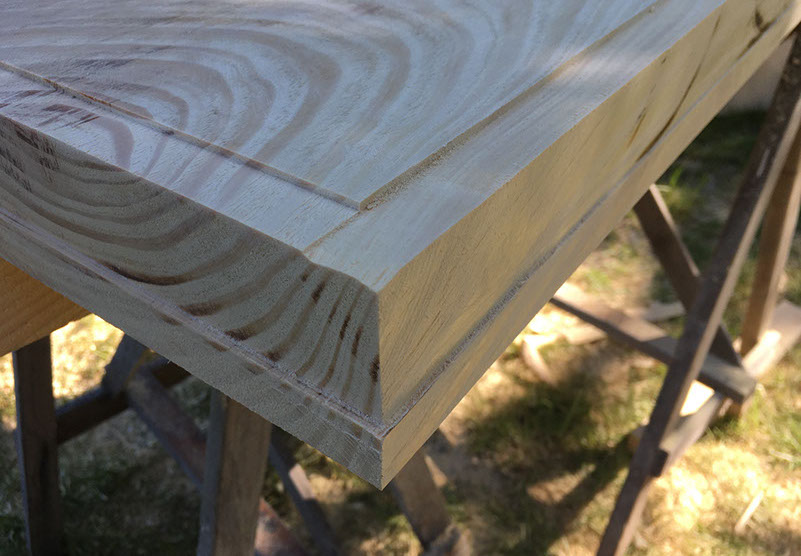 Op maat maken van de vensterbanken en plinten. Daarna voorzien van 2 lagen kleurlak en een laag transparante lak.
