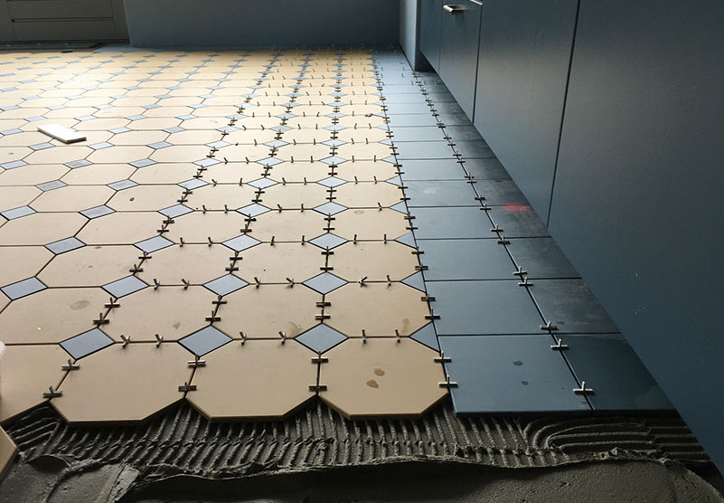 Uitzetten van de tegels in de woonkamer