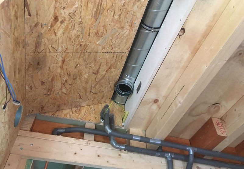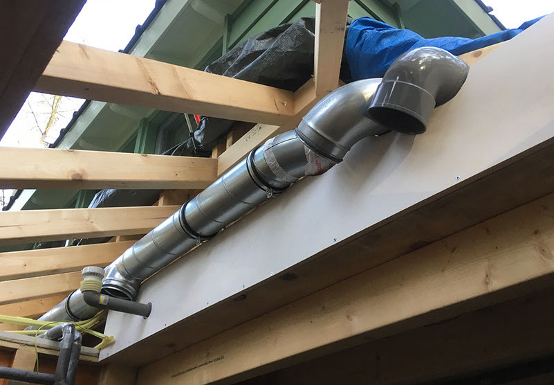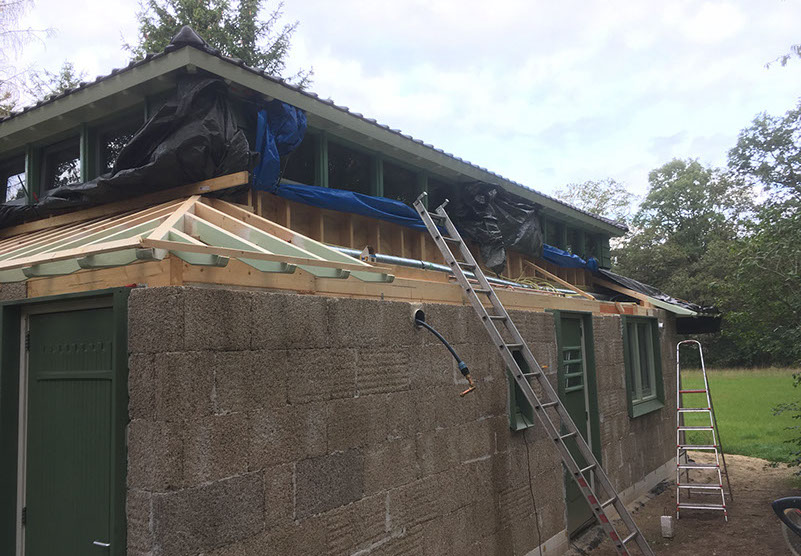 Laatste deel van de constructie van het onderste dak aanbrengen