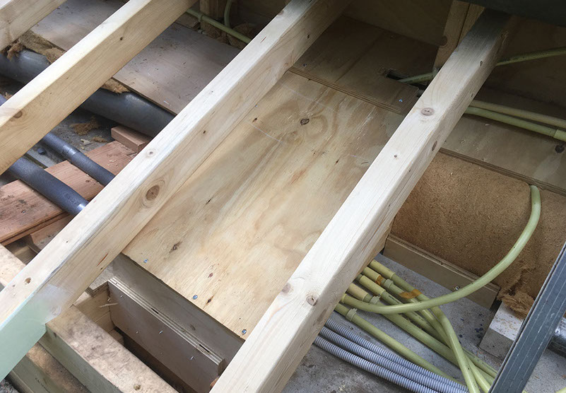 Plafond maken boven de meterkast waarop de isolatie gestort kan worden.